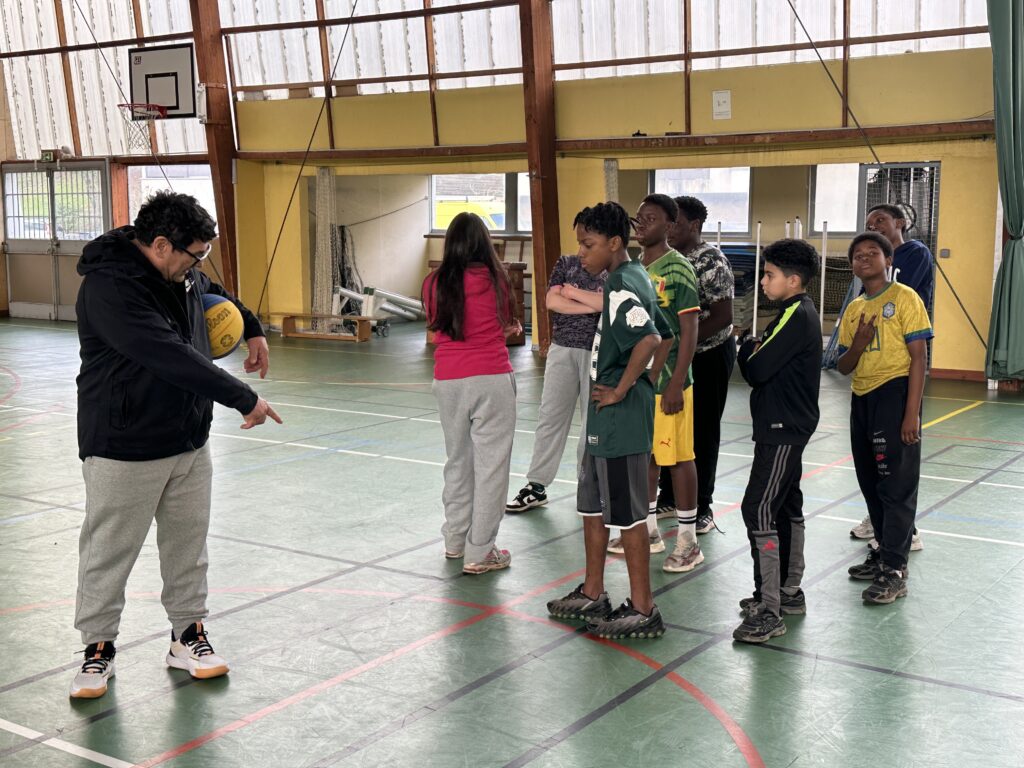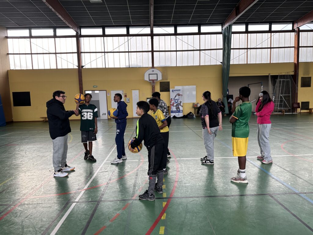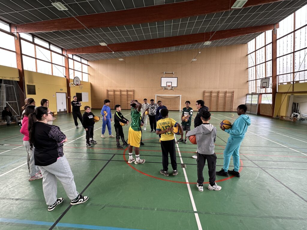 Très belle animation 3#3 ce mardi après-midi à Calmette en partenariat avec Centre Social Alchimis. Seize jeunes de 11 à 14 ans, dont cinq filles, encadrés par notre coach Michel, avec Virgile, Dania et Sana côté Alchimis. Du travail sur l’adresse et les passes puis du collectif et des matches #3×3, du rythme, des changements, des conseils, de bons moments d’apprentissages et de plaisir. Une bonne séance de deux heures.